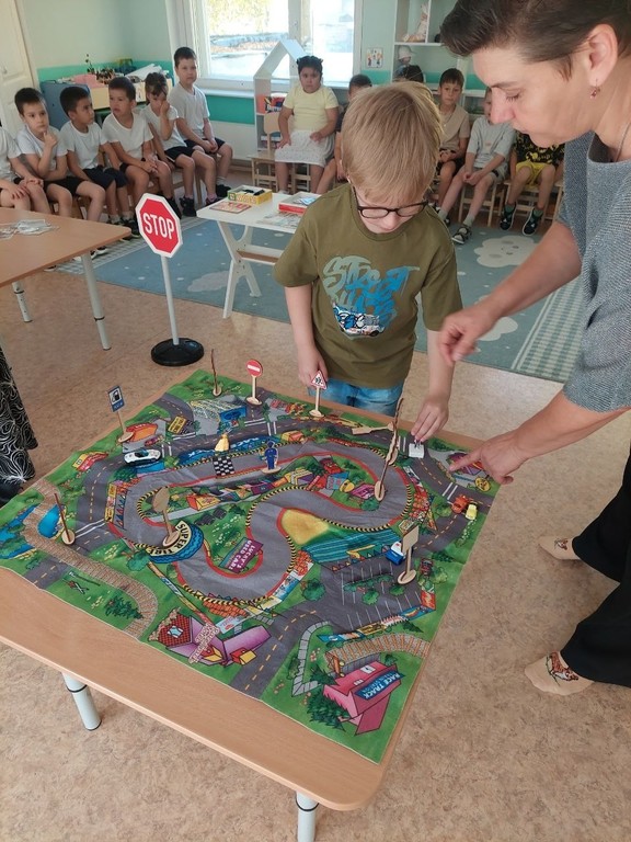 Занятие прошло в игровой форме. Ребята, кидая кубик, совершали шаги по игровому полю и выполняли различные задания на знание правил дорожного движения. Отвечали на вопросы, решали проблемные ситуации, отгадывали загадки, находили подходящие знаки. В заключении членам отряда были вручены «Удостоверения юных инспекторов дорожного движения».