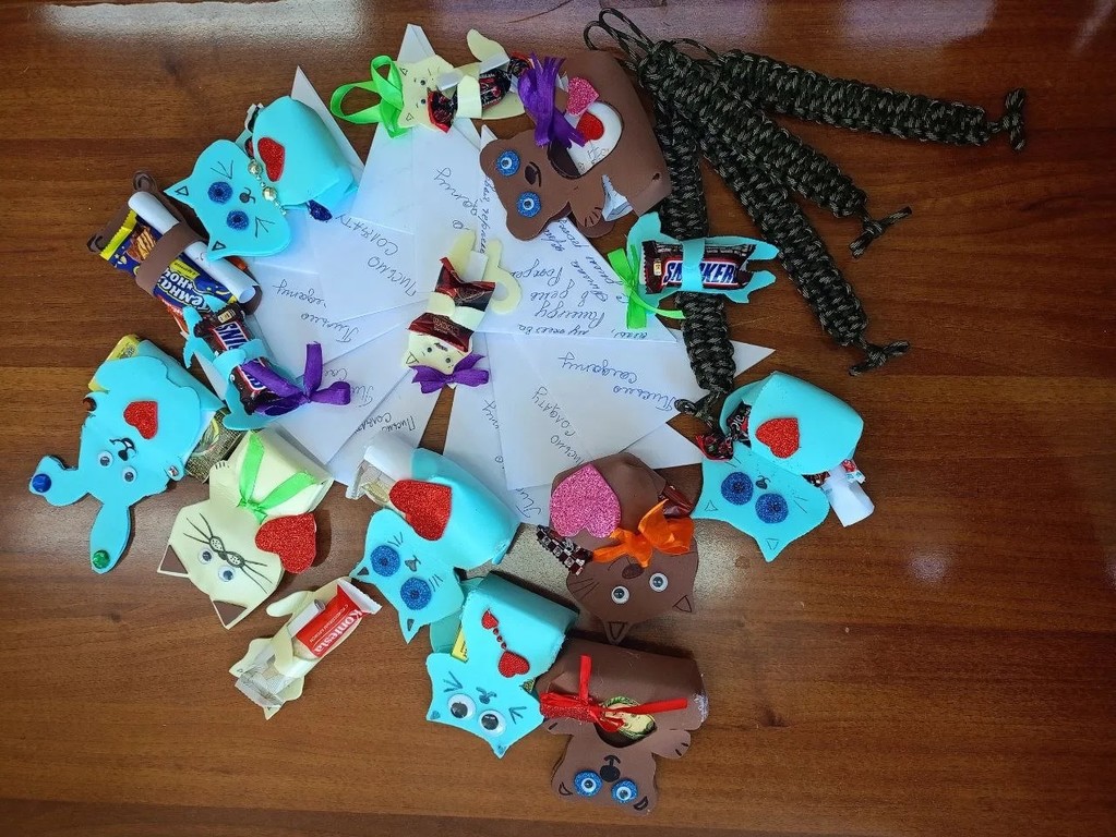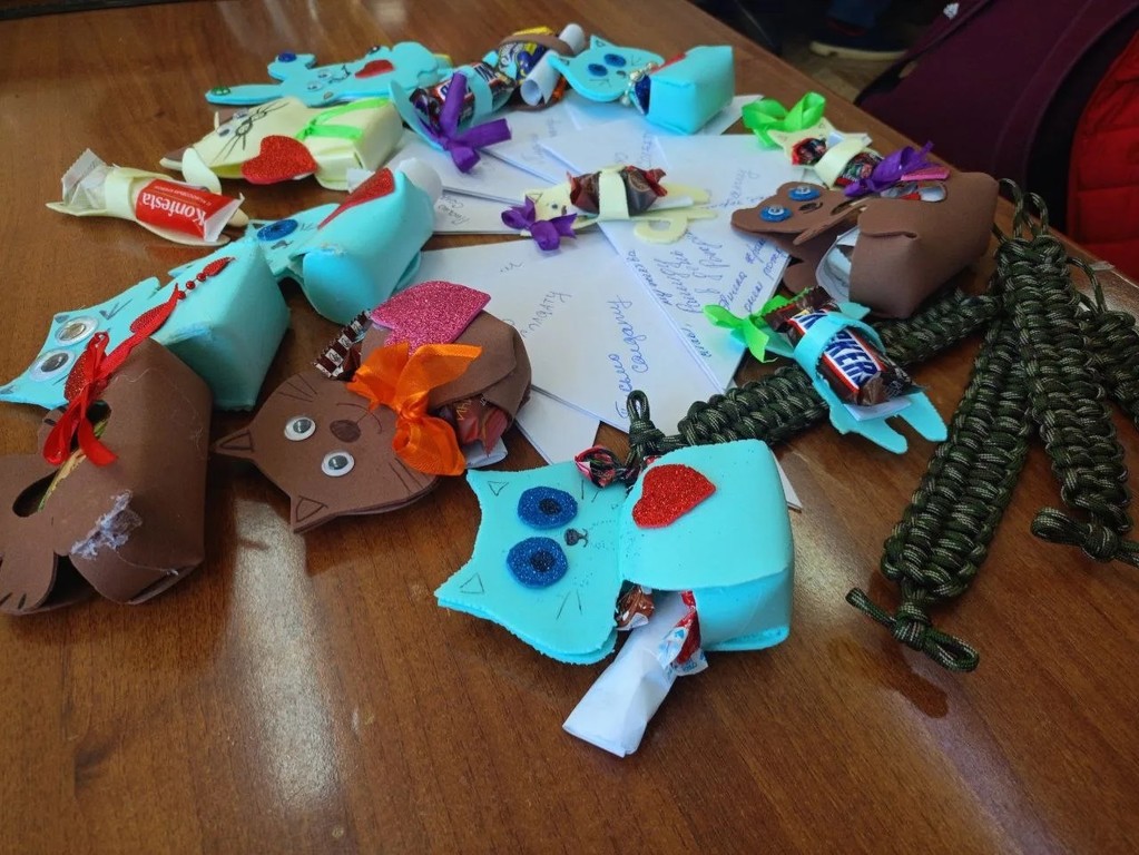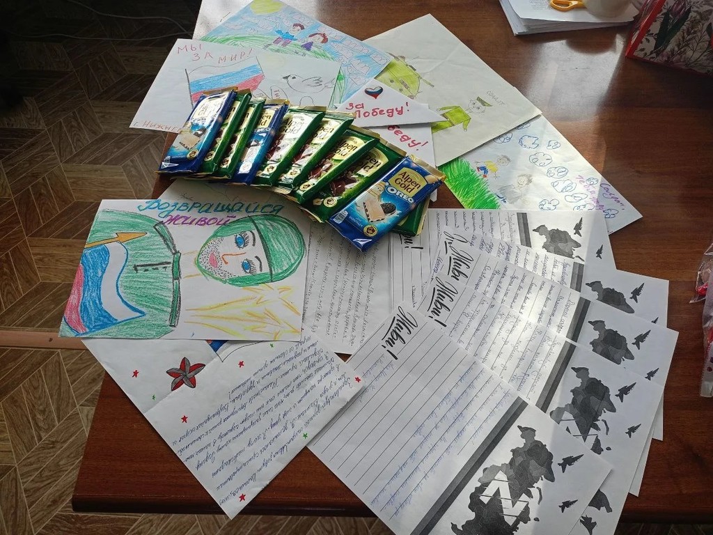 Ребята подготовили сладкие подарки и письма, в которых обратились с тёплыми словами поддержки к нашим Защитникам, выразили искреннюю признательность, гордость за смелость и мужество наших солдат.