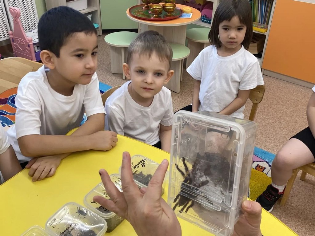 В рамках исследовательского проекта прошло знакомство с пауками семейства Птицеедов. На занятии ребята наблюдали за поведением пауков, узнали их место обитания, чем питаются эти существа. Смогли рассмотреть, как устроено тело. Особенно лапки, с помощью которых они с легкостью удерживались на стенках и крышке террариума. И хоть в начале часть ребят и побаивались гостей, к концу занятия пауки стали удивительными и милыми, а некоторые ребята захотели завести себе таких же пауков. Тема проекта захватила даже родителей, которые, придя за детьми, не удержались и с интересом вместе рассматривали и наблюдали за пауками.